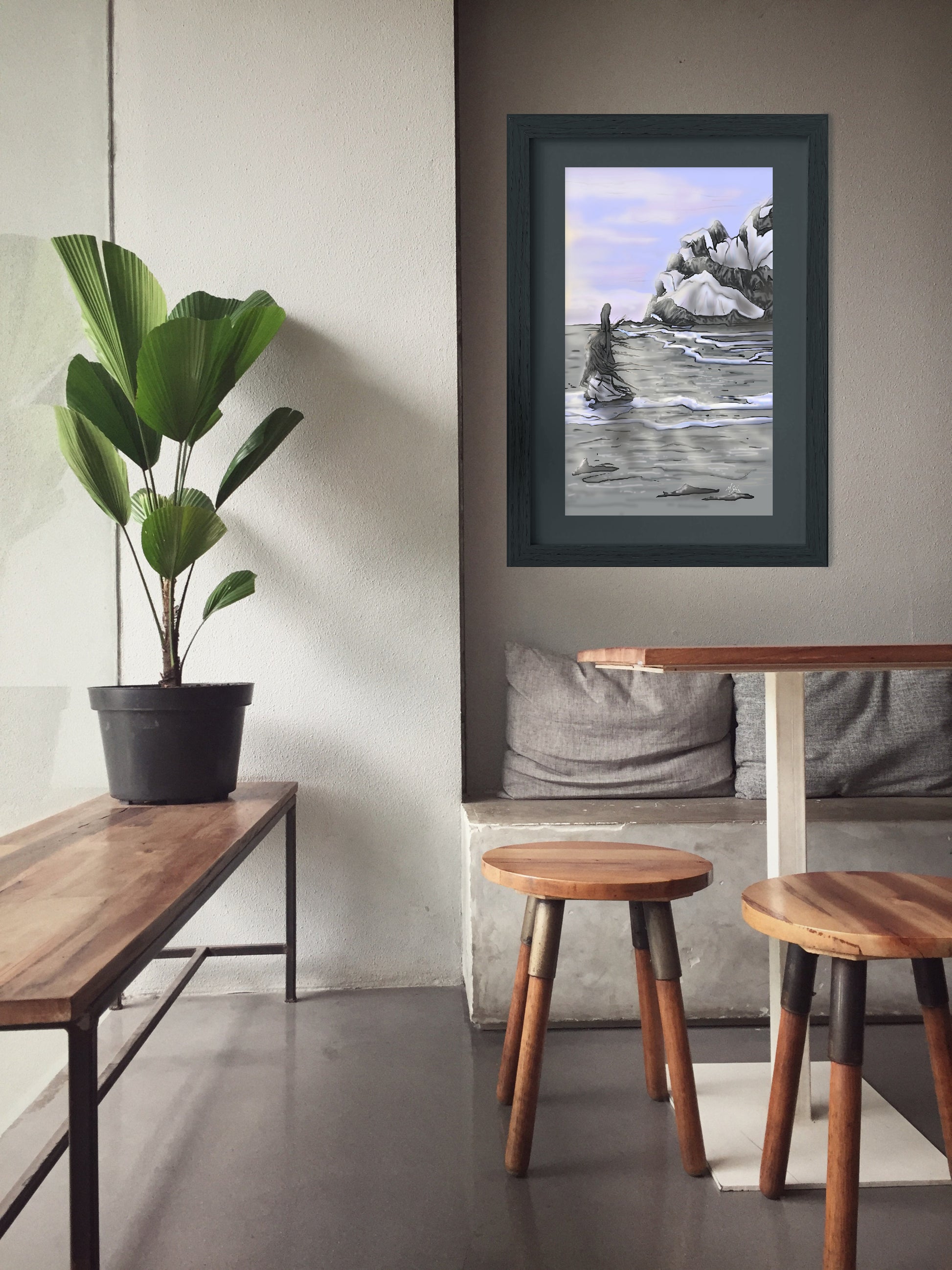 Please note: to reduce potential breakages during shipping, the framed pieces will come with Acrylic Glass facing. If you have a preference for glass, please contact us and we will provide an adjusted price for framing and shipment. Unframed prints are sent rolled to protect edges.